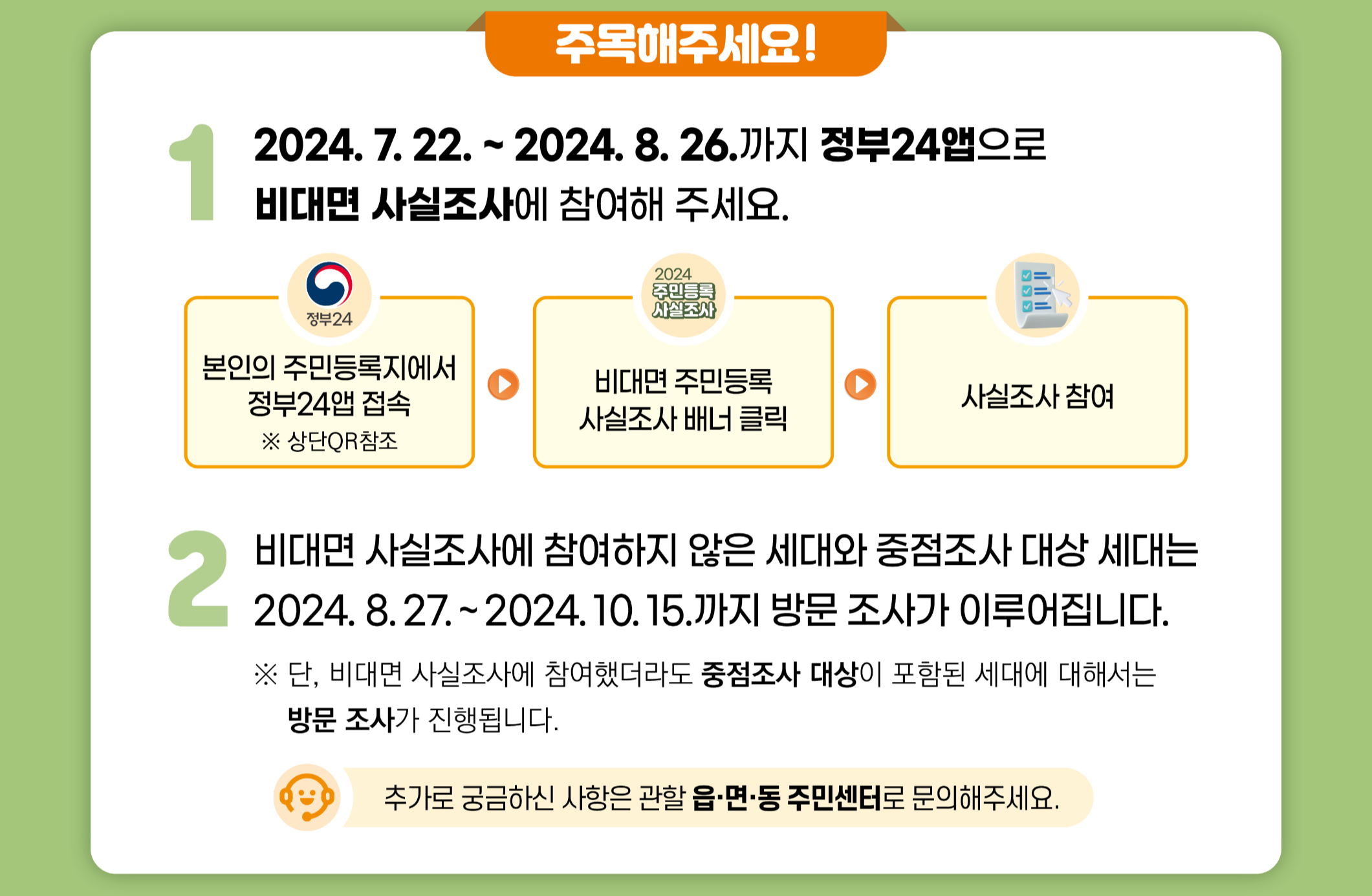 2024년 7월 22일부터 10월 15일까지 주민등록 사실조사를 실시한다고 합니다.